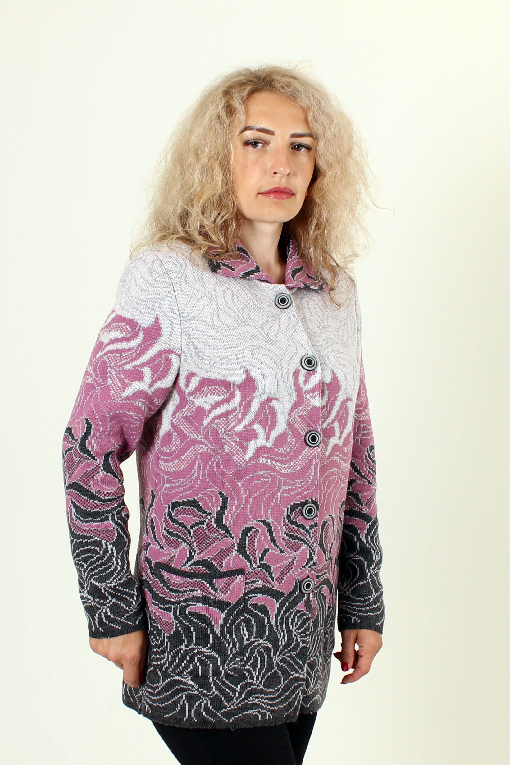 Жакет, цвет розовый, размерный ряд 46-72, длина 72-76 см. Состав 90% ПАН 10% шерсть
